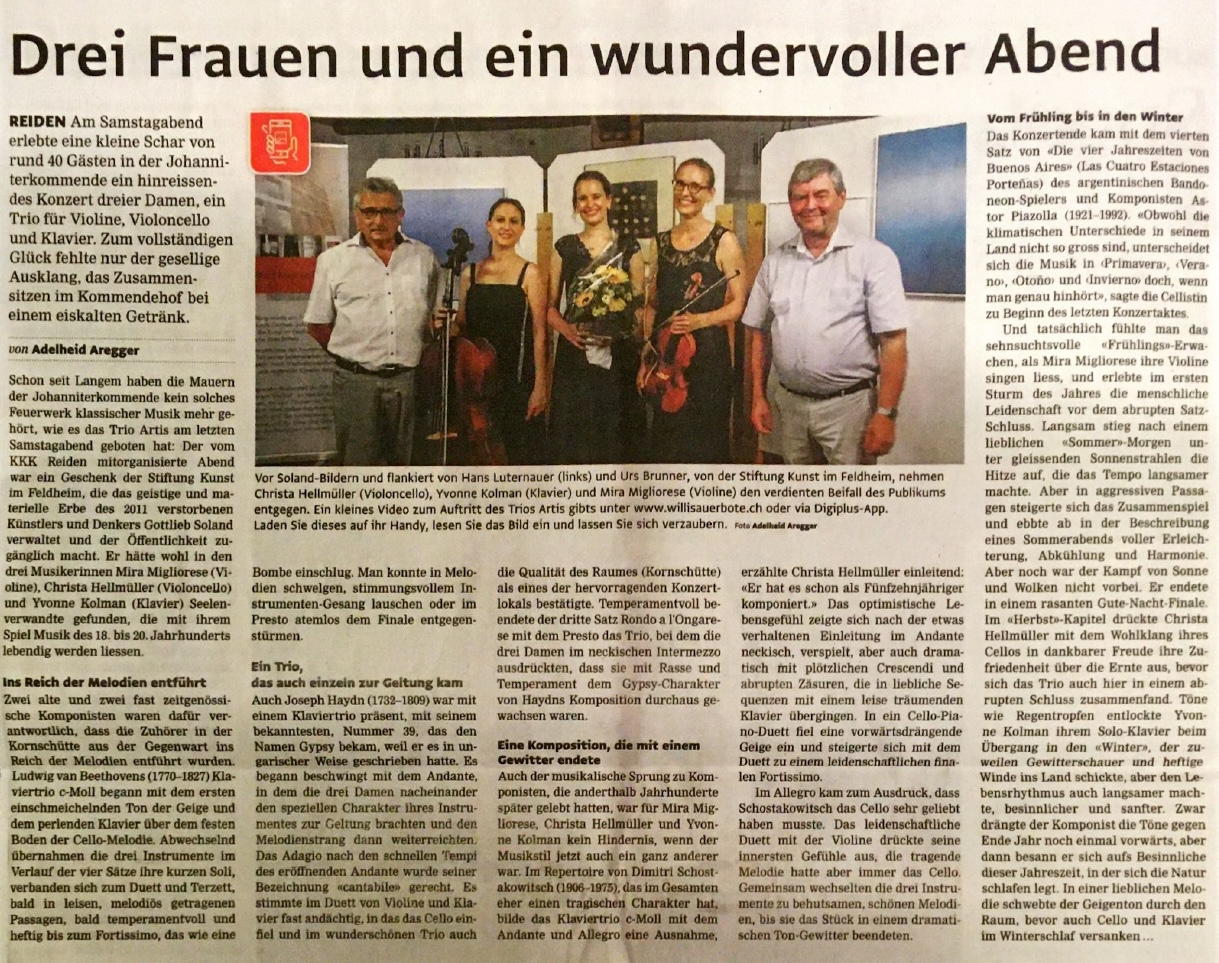 Das 2016 gegründete Klaviertrio Artis zeichnet sich aus durch